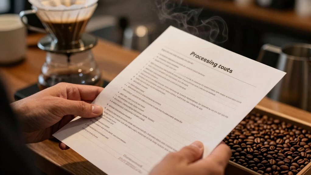 Furthermore, understanding the impact of processing variables on flavor can help you develop a more targeted approach to brewing. Over time, it empowers you to tailor your approach, balancing extraction and flavor development to craft the perfect cup. Incorporating sensory analysis into your notes can deepen your appreciation of flavor nuances and guide your adjustments more effectively. In essence, maintaining detailed processing notes is a simple yet powerful habit that elevates your brewing. It links your technical practices—like equipment calibration—to your sensory experience, allowing you to make informed decisions. By systematically tracking your process, you turn trial and error into a structured learning journey. This consistency and attention to detail ultimately help you unlock the full potential of your coffee, creating richer, more nuanced flavors in every cup.