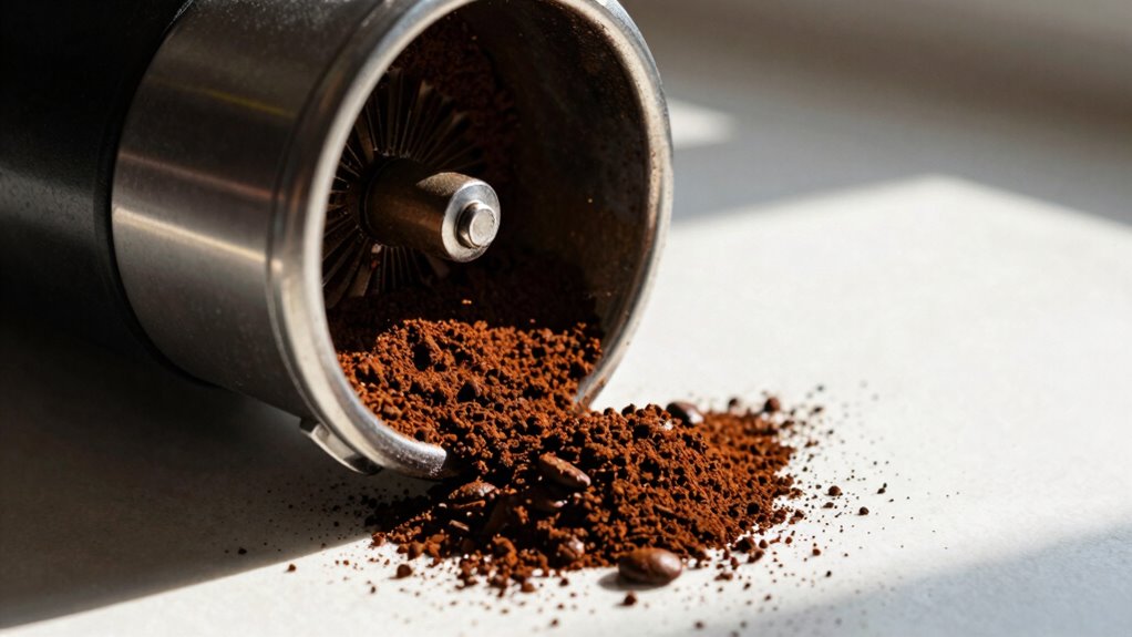 Switching to a different grinder can help stabilize grind size, but it depends on its quality and maintenance. A high-quality grinder with consistent dosing and sharp burrs minimizes drift. Regular grinder maintenance prevents uneven grinding and ensures uniform particle size. If your current grinder struggles with consistency, upgrading might be the solution. However, even the best grinder needs proper care to maintain peak performance and avoid grind drift throughout the day.